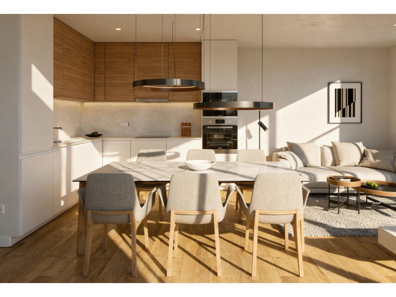 Este modelo es totalmente personalizable en distribución y diseño. El precio incluye todo lo necesario para entrar a vivir: proyecto básico y ejecutivo realizado por nuestros arquitectos, dirección de obra, gestión de licencias, construcción modular con estructura de acero y hormigón, transporte e implantación. La vivienda se entrega completamente terminada con climatización por aerotermia, ventilación con recuperador de calor, cocina equipada con electrodomésticos BOSCH, baños completos, armarios empotrados a medida, pavimentos porcelánicos de gran formato, carpinterías de altas prestaciones e iluminación LED integrada.
