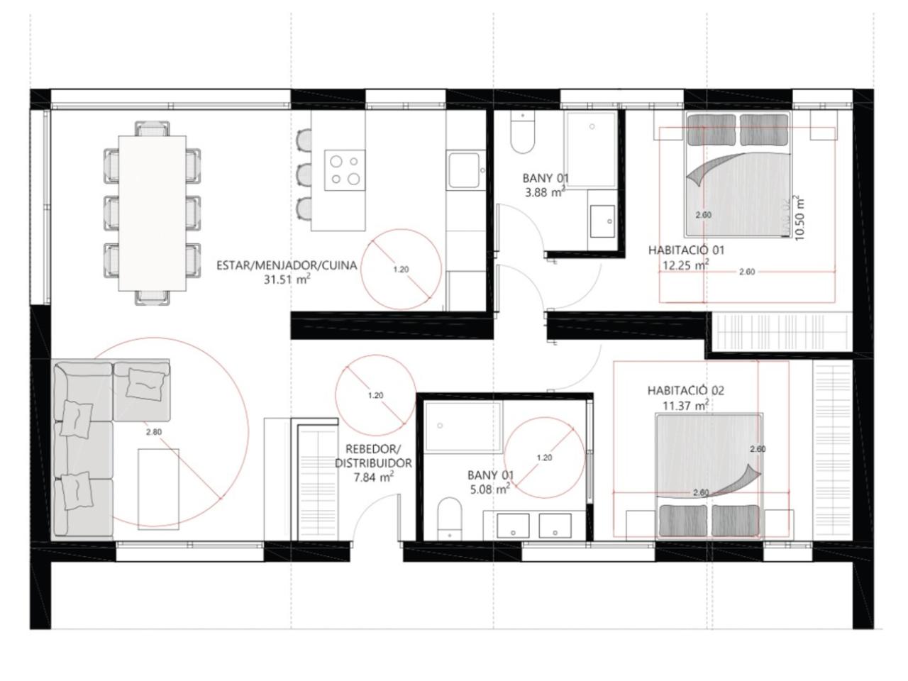 Este modelo es totalmente personalizable en distribución y diseño. El precio incluye todo lo necesario para entrar a vivir: proyecto básico y ejecutivo realizado por nuestros arquitectos, dirección de obra, gestión de licencias, construcción modular con estructura de acero y hormigón, transporte e implantación. La vivienda se entrega completamente terminada con climatización por aerotermia, ventilación con recuperador de calor, cocina equipada con electrodomésticos BOSCH, baños completos, armarios empotrados a medida, pavimentos porcelánicos de gran formato, carpinterías de altas prestaciones e iluminación LED integrada.
